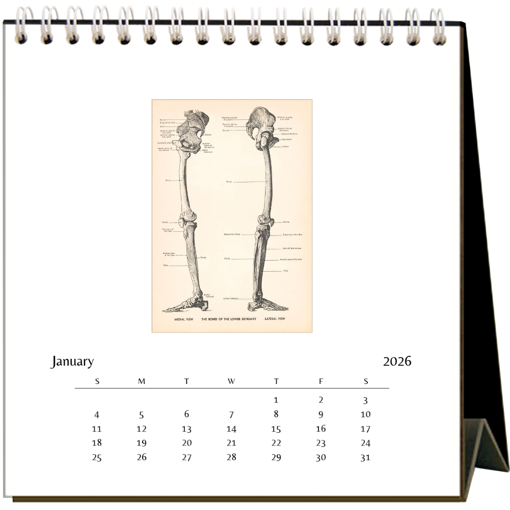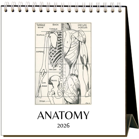 Are you fascinated by the inner workings of the human body?  Got a thing for organs, muscles, and bones?  You’re going to love this Anatomy easel desk calendar.  It features 12 vintage (1900 – 1930) medical illustrations of all parts human.  See what’s going on inside that amazing human machine of yours with one of these perched on your desk.  The calendar is 6” x 7” x 3” when expanded and is printed on 100% post-consumer recycled, acid-free, natural white, heavy cardstock.  Made in the USA!