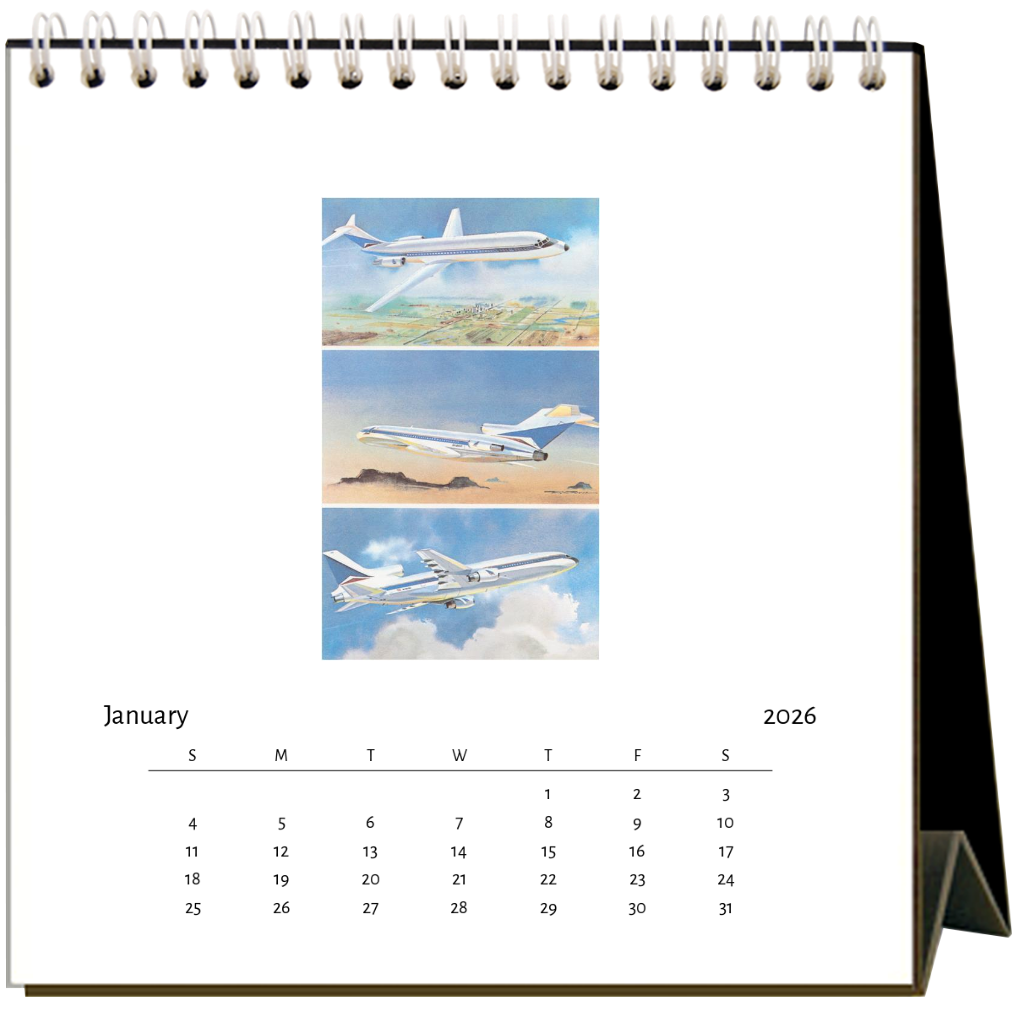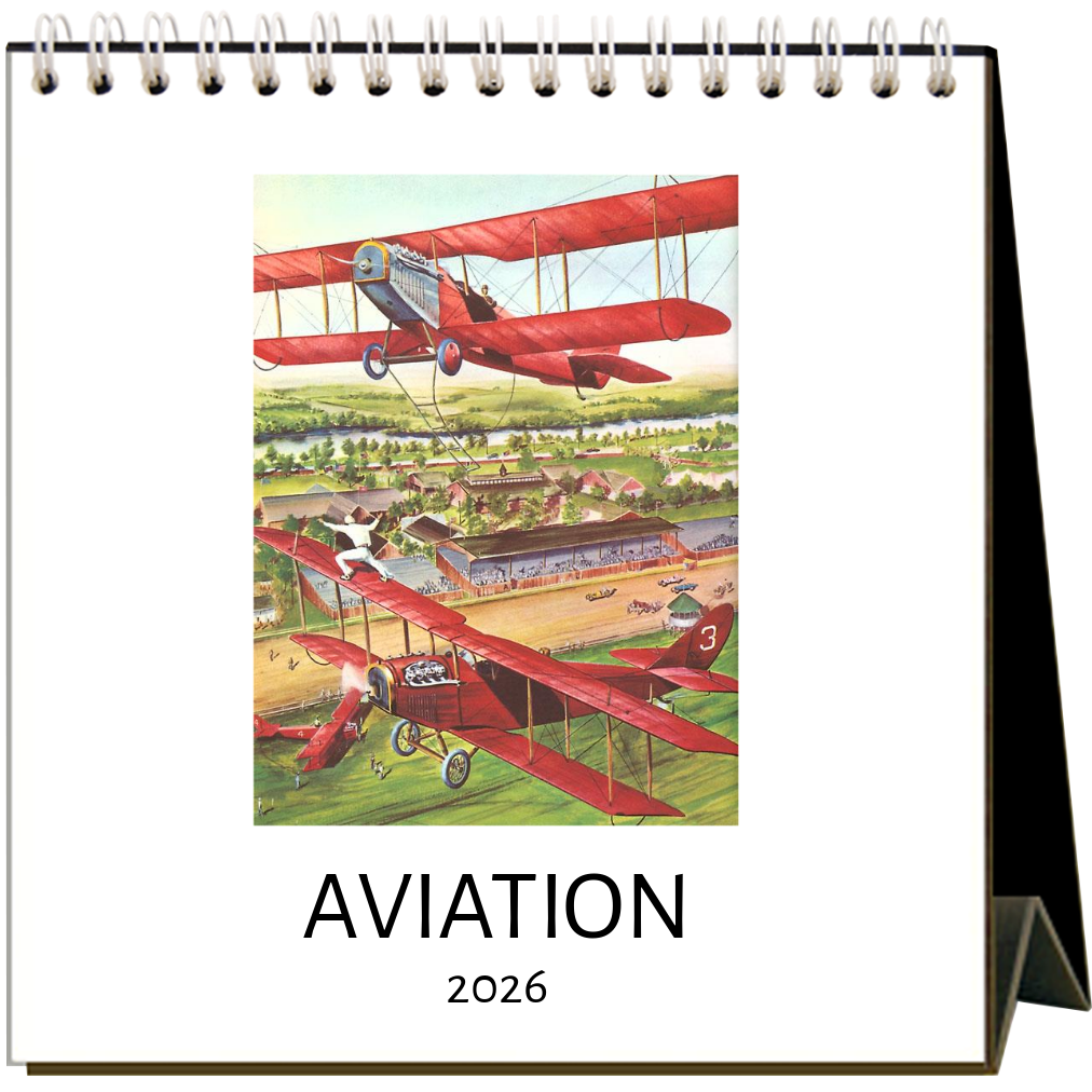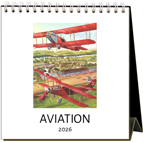 This easel desk calendar celebrates Aviation from early bi-planes, to sea planes, prop planes and jet planes.  It features 12 colorful vintage aviation images from 1920 to 1960 and is printed on 100% post-consumer recycled, acid-free, natural white, heavy cardstock. Measuring 6” x 7” x 3” when expanded, this calendar is made in the USA.