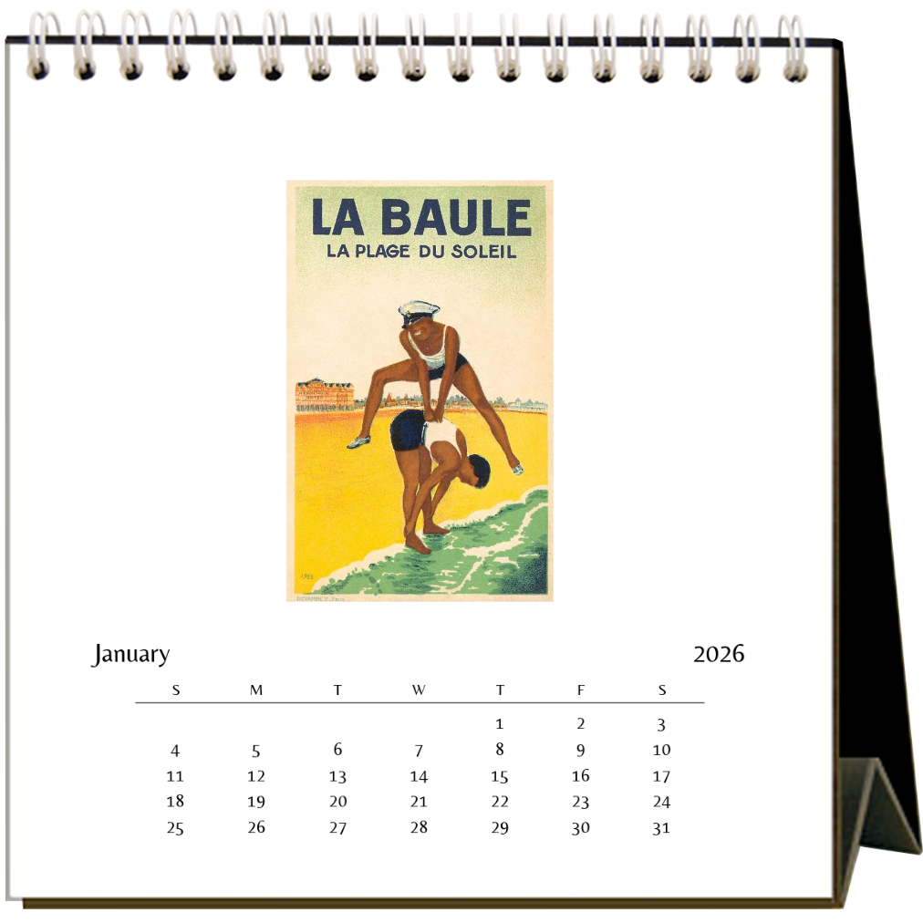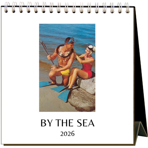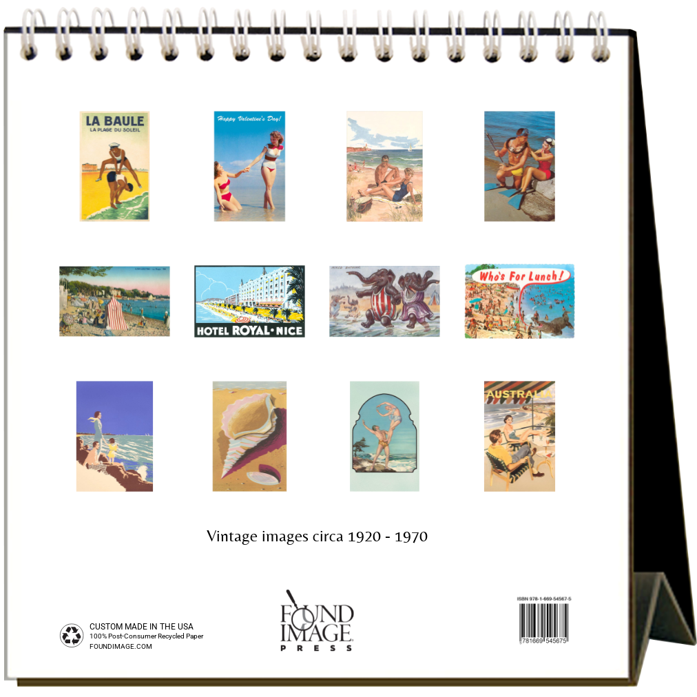 No time for a vacation this year? This By The Sea easel desk calendar with its 12 colorful vintage images (1920 to 1970) will get you to the water’s edge and the lazy days of summer. Lounge on the sand, get ready for a dive, frolic in the surf, enjoy a lovely seashell. This calendar is 6” x 7” x 3” when expanded and is printed on 100% post-consumer recycled, acid-free, natural white, heavy cardstock. Made in the USA!