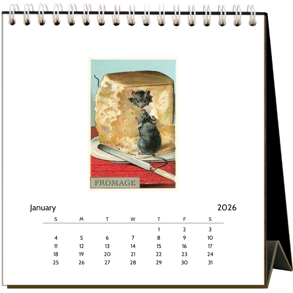 This easel desk calendar is for all you cheese lovers out there (and we know there are a lot of us)!  What could be better than a platter of cheese slices, or a nut-encrusted cheeseball, or a store shaped like a wheel of cheese, or a truck that will deliver cheese right to your door?  These 12 colorful vintage images (1900 - 1960) bring it all to you on 100% post-consumer, recycled, acid-free, natural white, heavy cardstock. The calendar is 6" x 7" x 3" when expanded and is made in the USA. Yum!