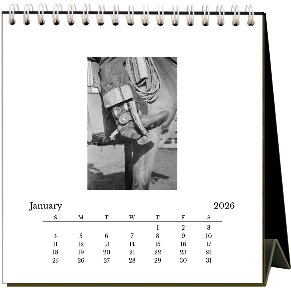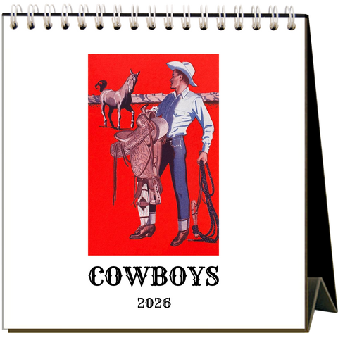 Don’t you just love Cowboys and their trusty horses?  This Cowboys easel desk calendar features 12 vintage images of cowboys hard at work in the Wild West from 1910 to 1960.  It measures 6” x 7” x 3” when expanded and is printed on 100% post-consumer recycled, acid-free, natural white, heavy cardstock.  Made in the USA!  Round ‘em up, move ‘em out!