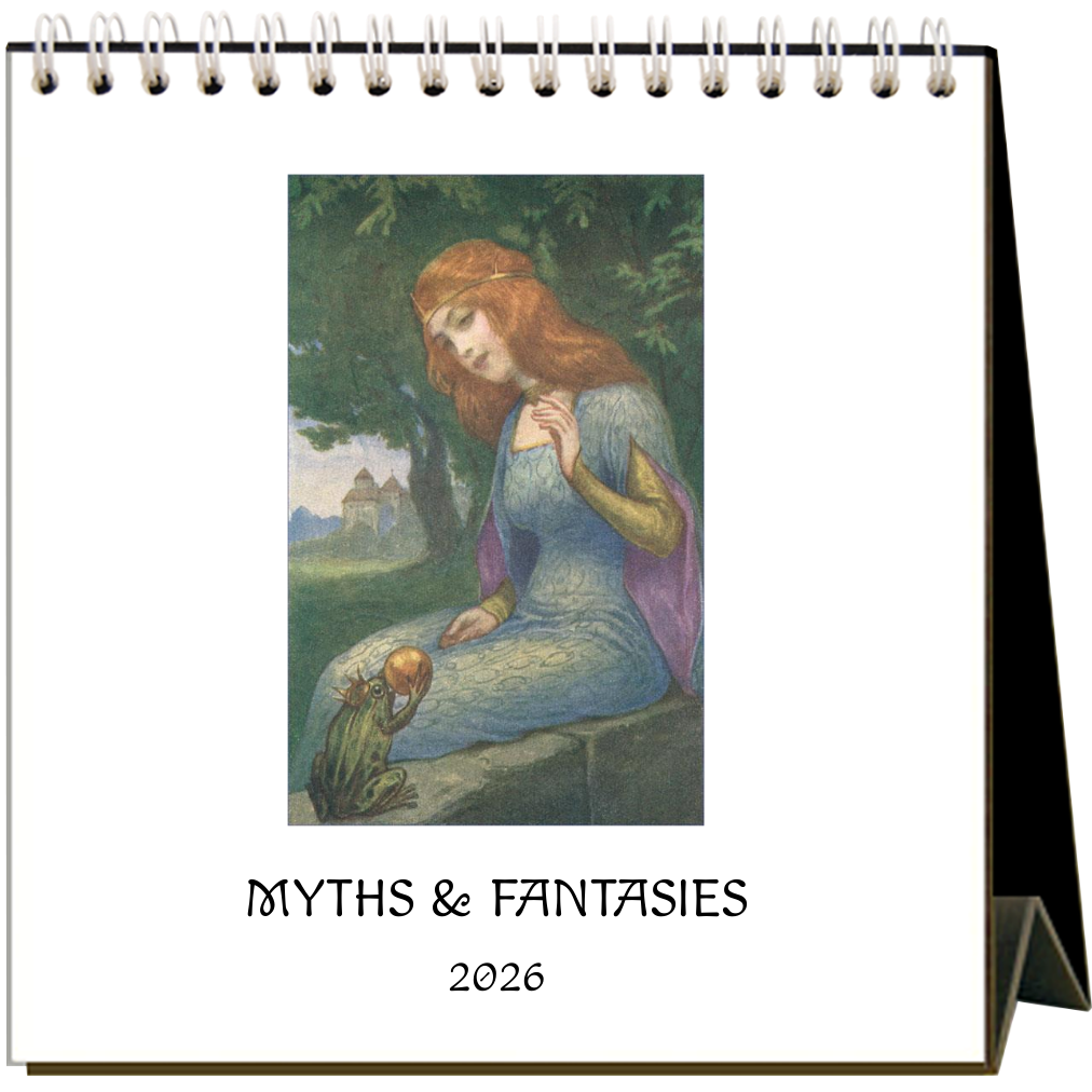 Need to escape the realities of life? This Myths and Fantasies easel desk calendar will carry you far away to the land of knights and fair maidens, fairies, sprites, elves, quests, and dragons. Featuring 12 vintage images from 1880 to 1930, the calendar is printed on 100% post-consumer recycled, acid-free, natural white, heavy cardstock and measures 6” x 7” x 3” when expanded. Made in the USA.