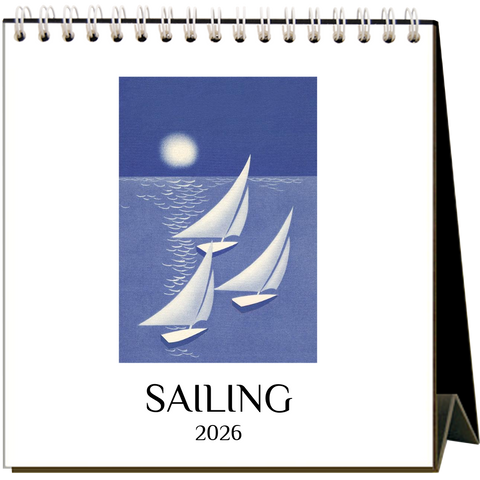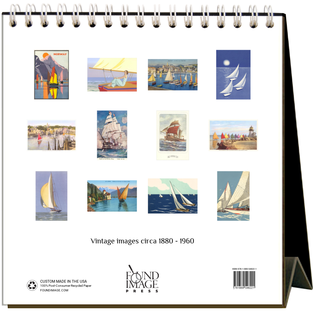 Do you love sailboats and the open sea? This Sailing easel desk calendar is for you with its 12 beautiful vintage images (1880 – 1960) of sailboats and sailors doing what they do best. The calendar is printed on 100% post-consumer recycled, acid-free, natural white, heavy cardstock and is 6” x 7” x 3” when expanded. Enjoy an exciting or leisurely day on the water with a good wind and a full sail. Made in the USA!