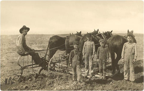 AG-22 Homesteader Family with Horses and Plow - Vintage Image