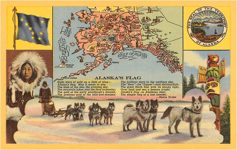 AK-57 Alaska Map with Sled Dogs - Vintage Image