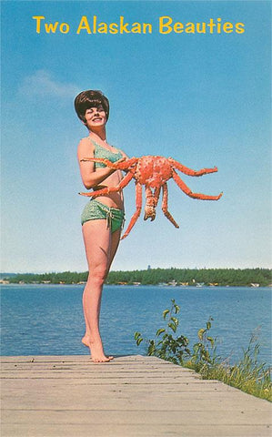 AK-128 Woman with Crab, Alaskan Beauties - Vintage Image