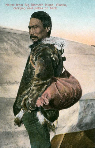 AK-138 Indigenous Alaskan Man with Seal Poke - Vintage Image
