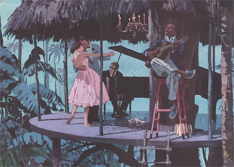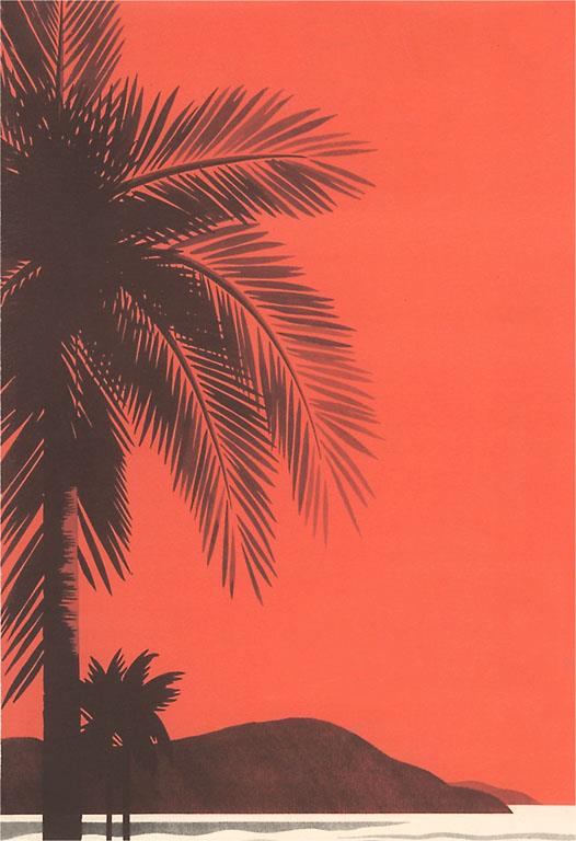 AM-372 Red Sky, Palm Trees - Vintage Image