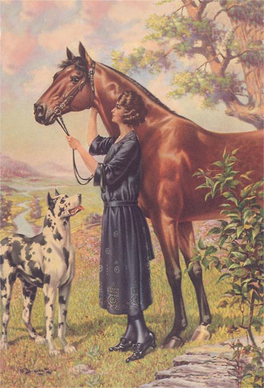 AM-924 Woman with Horse - Vintage Image
