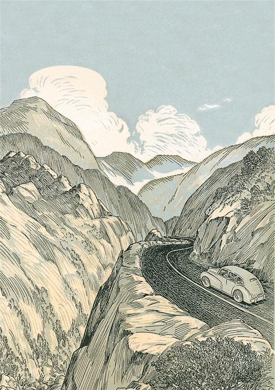 AM-928 Car Driving Uphill - Vintage Image