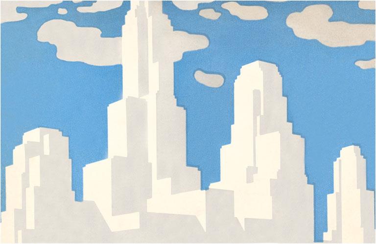 AM-304 Woodcut of Skyscraper - Vintage Image