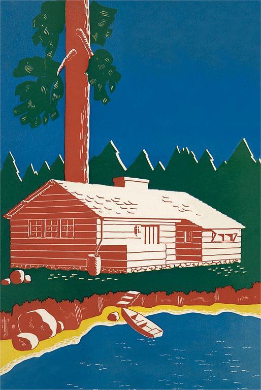 AM-257 Cabin by Lake - Vintage Image