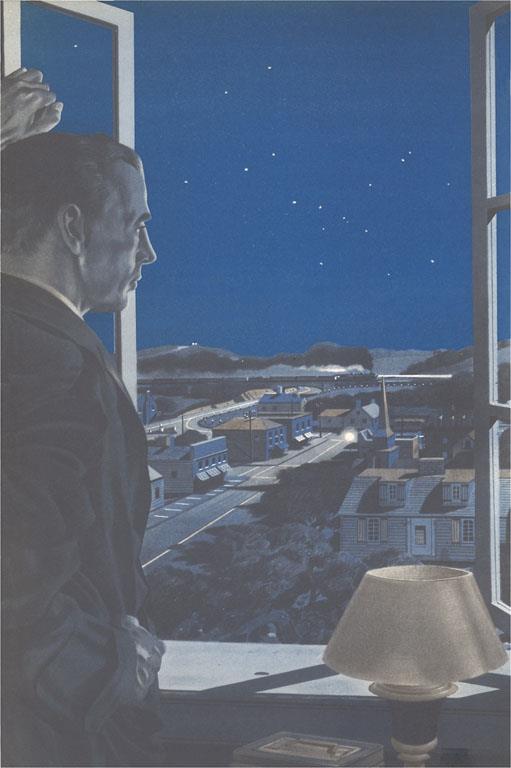 AM-267 Abstract Skyscraper at NIght - Vintage Image