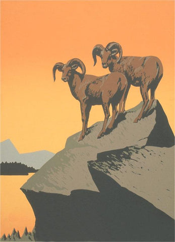 AM-239 Big Horn Sheep on Rocks - Vintage Image