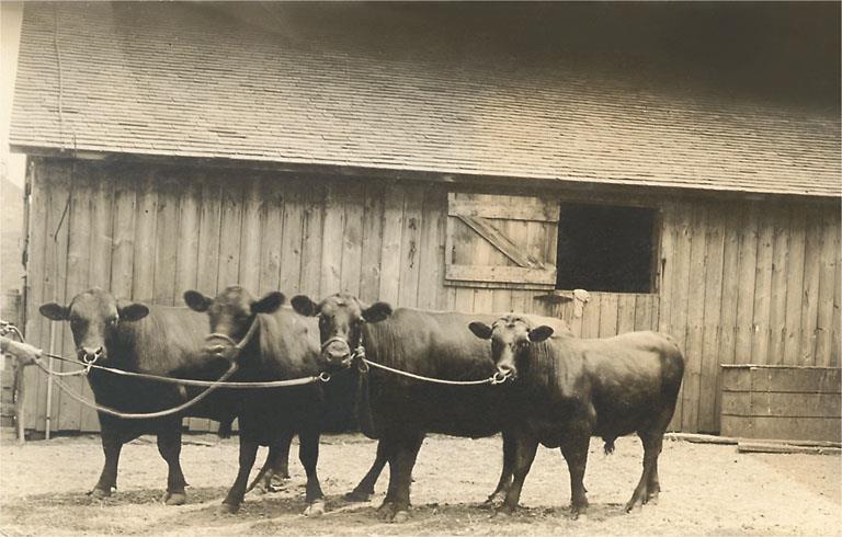 AA-169 Steers by Barn - Vintage Image
