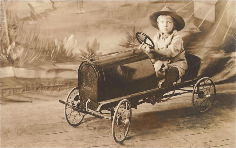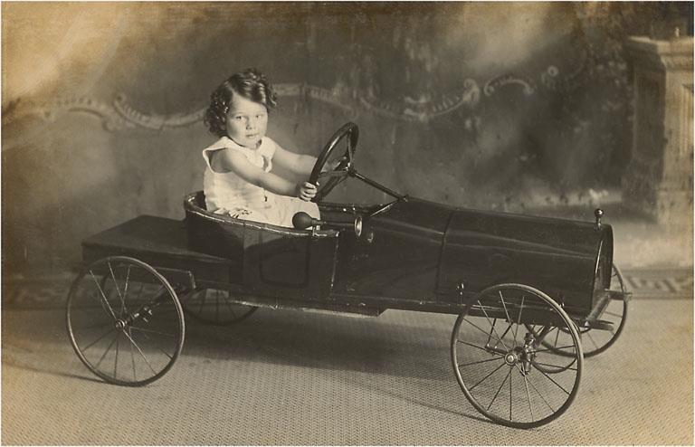 AA-05 Girl in Toy Car - Vintage Image