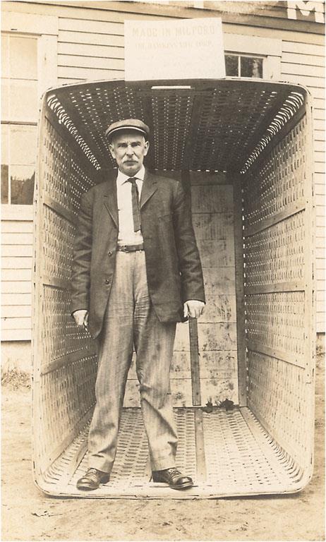 AA-233 Man in Large Basket - Vintage Image