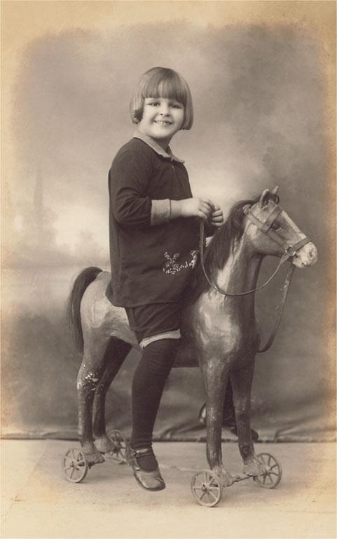 AA-164 Girl on Pony - Vintage Image