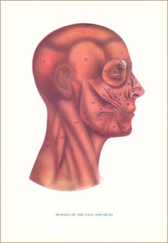 AY-02 Muscles of the Face and Head in Profile - Vintage Image