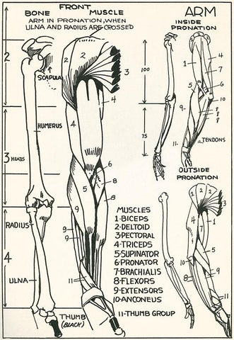 AY-88 Illustration of Arm Bones and Muscles - Vintage Image