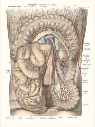 AY-187 Cutaway View of Abdominal Cavity - Vintage Image