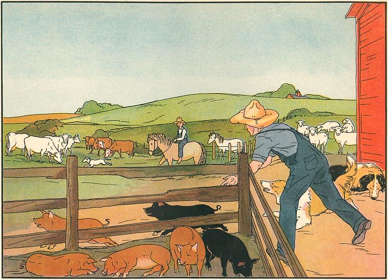 AN-219 Barnyard Scene - Vintage Image