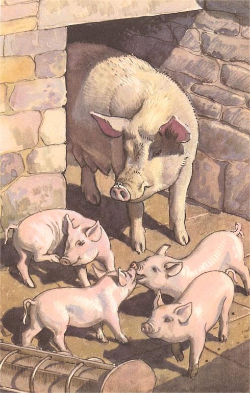 AN-201 Sow and Piglets - Vintage Image
