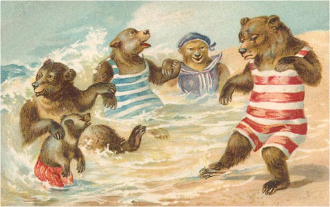 AN-73 Bear Family Frolicking in Surf - Vintage Image
