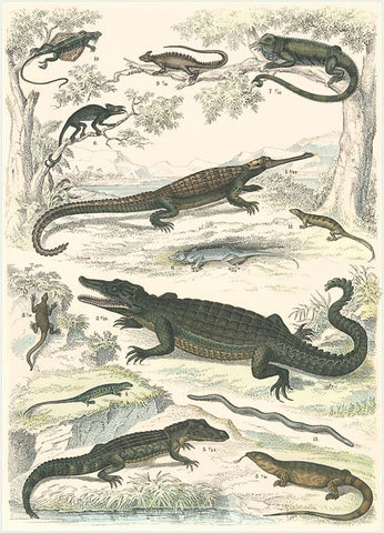 AN-166 Various Reptiles - Vintage Image