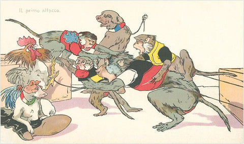 AN-173 Fighting Animals, the First Attack - Vintage Image