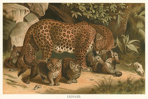 AN-205 Leopard with Cubs - Vintage Image