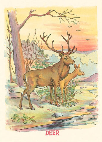 AN-223 Deer, Buck and Doe - Vintage Image