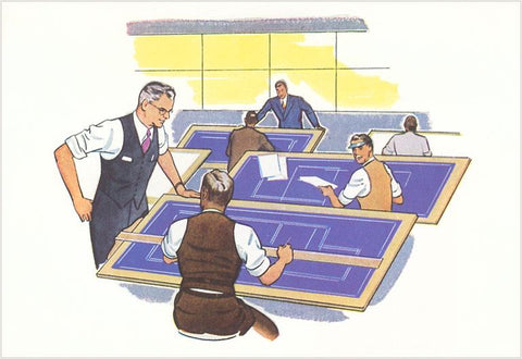 AD-80 Draftsmen with Blueprints - Vintage Image