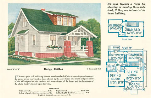 AD-238 Single-Family Home, Rendering and Floor Plans - Vintage Image