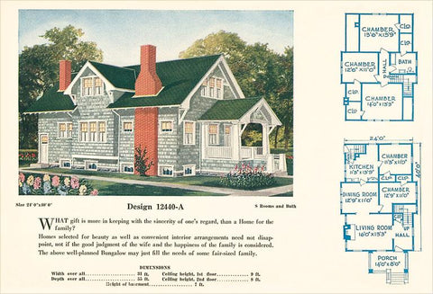 AD-250 Single-Family Home, Rendering and Floor Plans - Vintage Image
