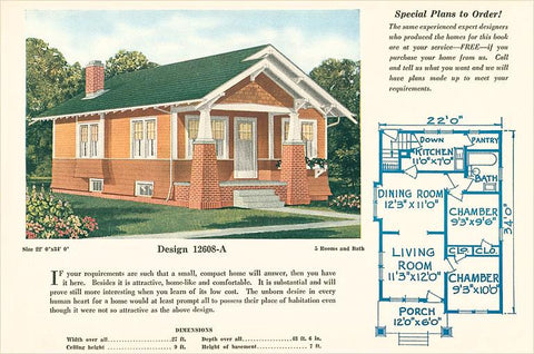 AD-260 Single-Family Home, Rendering and Floor Plans - Vintage Image