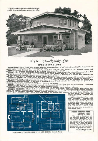 AD-313 Rendering and Floor Plan of Craftsman House - Vintage Image
