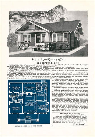 AD-315 Rendering and Floor Plan of Craftsman House - Vintage Image