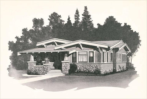 AD-316 Rendering and Floor Plan of Craftsman House - Vintage Image