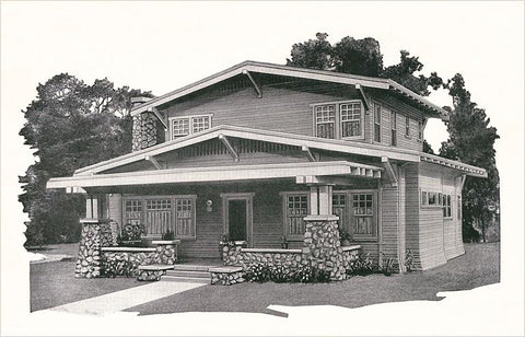 AD-317 Black and White Rendering of Craftsman Home - Vintage Image