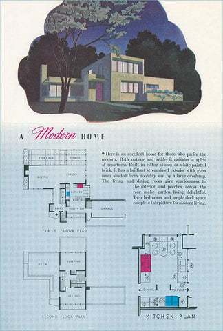 AD-329 Modern Home and Floor Plan - Vintage Image