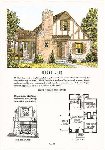 AD-450 Tudor Style Model House and Floor Plan - Vintage Image