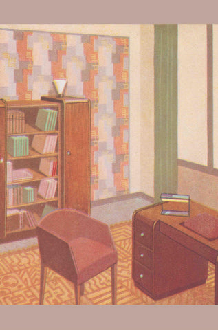 AD-713 Austere Office with Geometric Rug - Vintage Image
