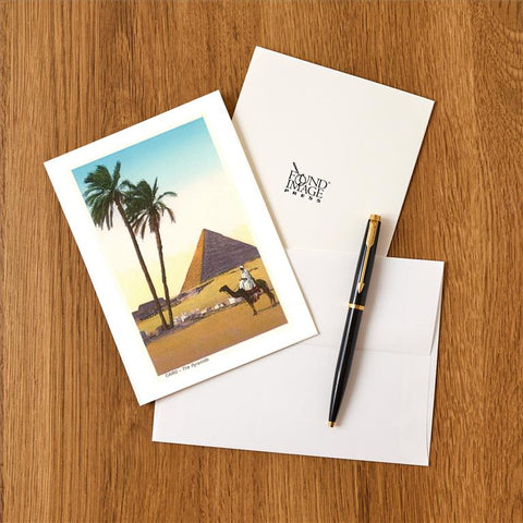 AH-06 Egyptian Pyramid with Camel and Palms - Vintage Image