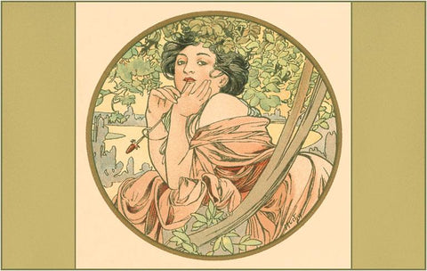 AT-07 Woman by Tree, Art Nouveau - Vintage Image