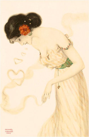 AT-13 Woman with Heart-Shaped Smoke-Rings, Art Nouveau - Vintage Image