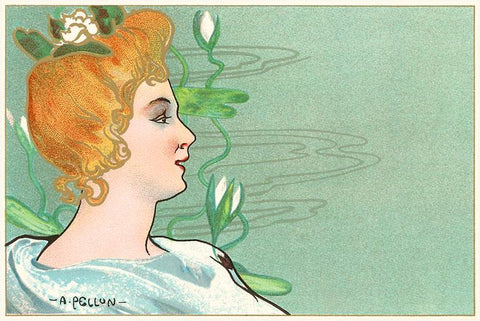AT-19 Woman with Lotus, Art Nouveau - Vintage Image