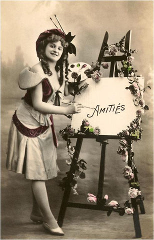 AT-79 Woman Painter with Palette and Easel, Amities - Vintage Image