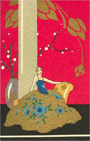 AT-102 Woman in Gown with Huge Flowered Skirt - Vintage Image