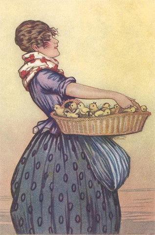 AT-189 Peasant Girl with Baby Chicks - Vintage Image